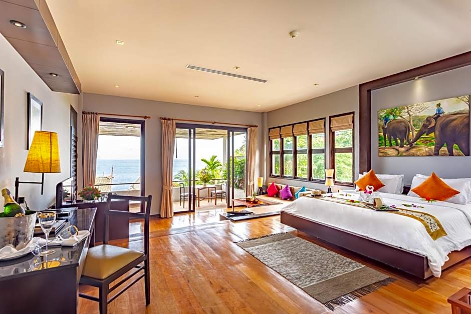 Discover affordable luxury at our five-star hotel in Kamala, Phuket. Our chic rooms boast ocean views, a coffee/tea station, and a stocked mini-bar. Enjoy entertainment with a 32-inch LCD TV, and stay connected with complimentary wireless internet. Relax on a quality pillow-top bed, unwind in a separate bathtub and rainfall shower, and lounge in a modest living area. Experience the perfect blend of affordability and opulence at our hotel, a top choice among hotels in Kamala, Phuket. Book now for an immersive stay with ocean views at our affordable five-star hotel.