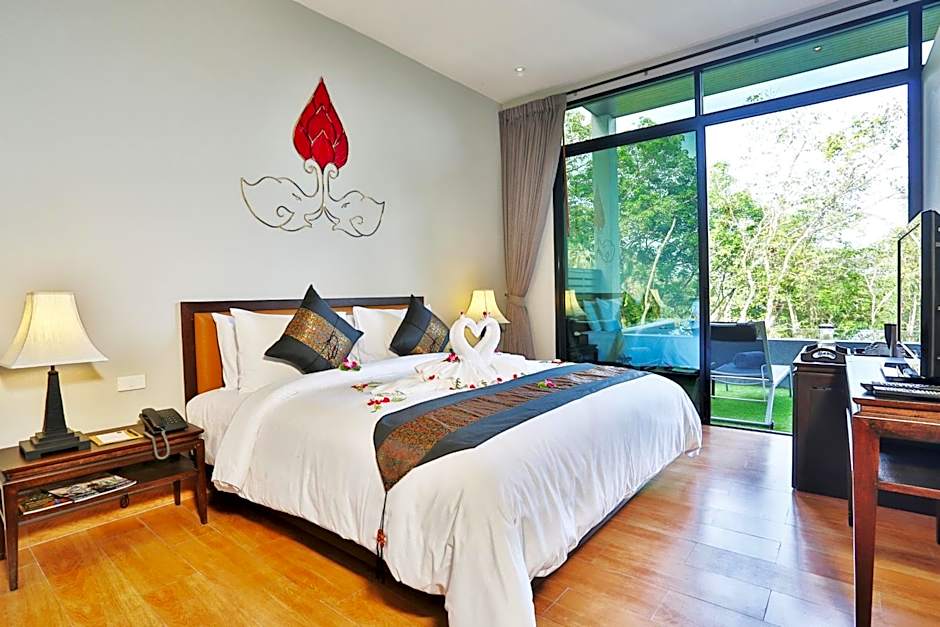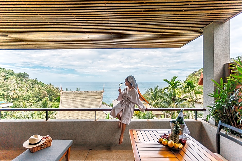 Indulge in luxury with our spacious honeymoon suite set on the elevated terrains of our Kamala, Phuket resort, offering breathtaking ocean views. Witness mesmerizing sunsets and twilights from your private terrace. Relax on the trendy L-shaped sofa, snuggle up on our quality king beds, and cultivate cherished moments in front of the television. Drift into a peaceful slumber in the lap of luxury. Experience the perfect blend of romance and ocean views at our Kamala, Phuket retreat. Book your unforgettable stay now.